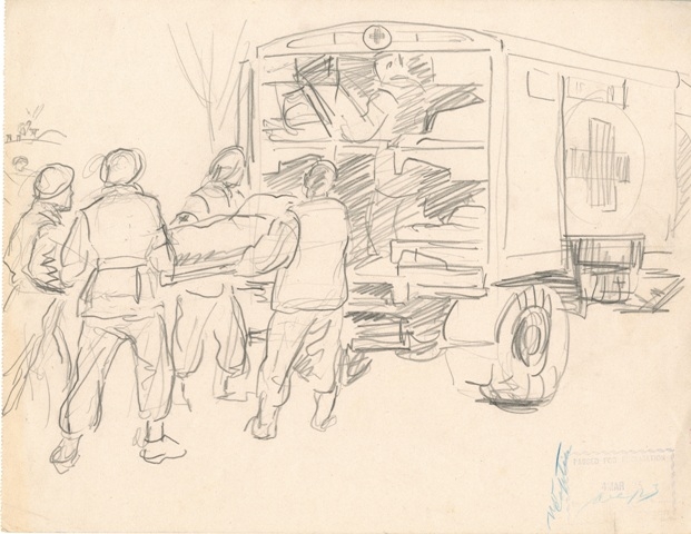 We reached Nymegen and found 3rd British Casualty Clearing Station which had set up there the day before in readiness for the push into Germany, starting at that moment. The day before, the barrage of gunfire from the guns all around the hospital went on for about 5 hours, so deafening, that the people had to scream to make themselves heard and were quite exhausted with noise by the time it stopped at last.